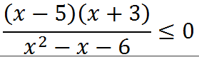2) (x+2)(x-3) < 0, luego pasamos multiplicando en la desigualdad (observa que el denominador es negativo) y queda: (x-5)(x+3) >= 0.