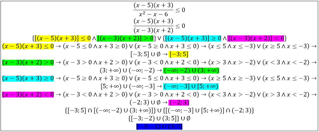 (x-5)(x+3) / (x+2)(x-3) <= 0.