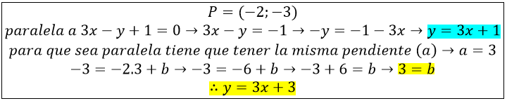 c) es paralela a 3x-y+1=0 y pasa por el punto (-2,-3)