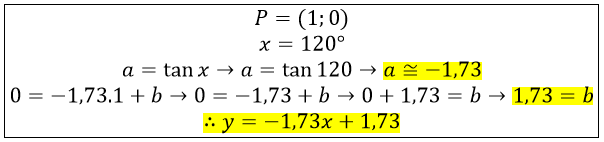 d) pasa por el punto (1,0) y forma un ángulo de 120o con la horizontal