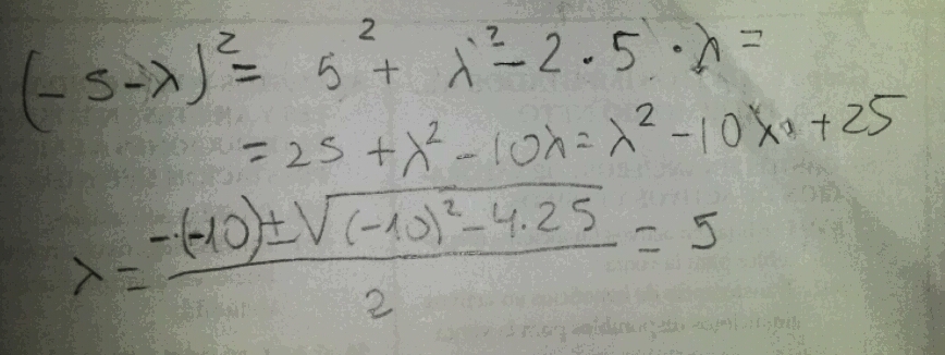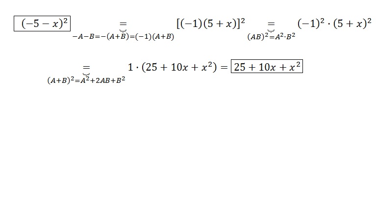 Me dicen que (-5-x)² es el cuadrado de una suma??, y que da 25+x²+10x...Pero si hay un menos. no lo entiendo...