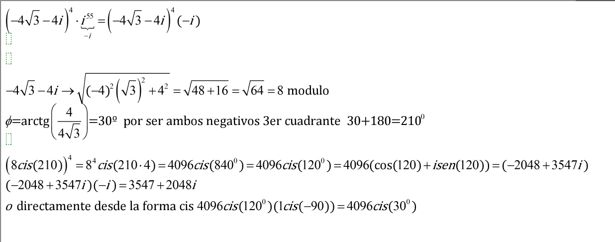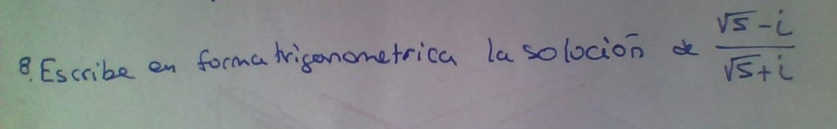 z = N/D = ( 4 - 2V(5)i )/6 = 2/3 - ( V(5) / 3 )i (observa que está expresado en forma cartesiana binómica),