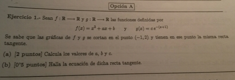 observa que ya tienes completa la expresión de la función:, para plantear condiciones para la pendiente de la recta tangente, que es común a ambas gráficas.