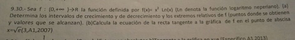 La recta tg es y-yo=m(x-xo) con xo=√e.