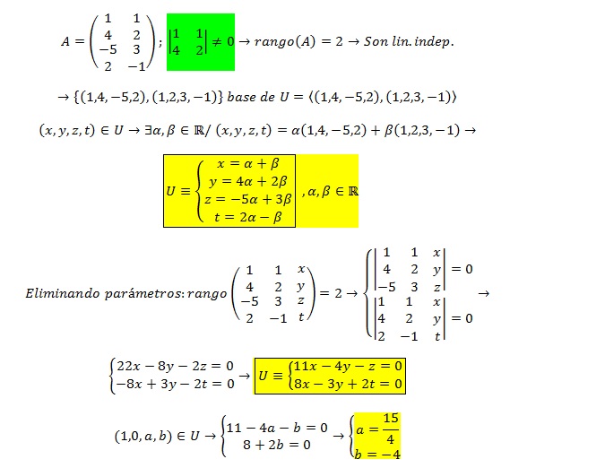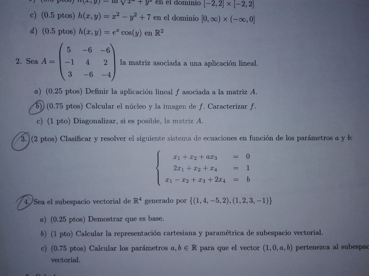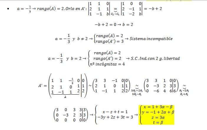 Buenas tardes, llevo unos días con este ejercicio y no consigo darle solución ya que creo que no utilizo los métodos apropiados, tengo una duda sobre un sistema de ecuaciones en función de los parámetros a y b, mi duda es al resolverlo, el enunciado del ejercicio es el siguiente:
