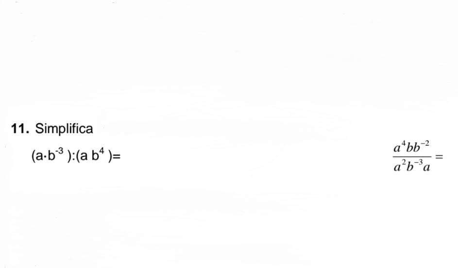 B = ( a^4 * b * b^(-2) ) / ( a^2 * b^(-3) * a ) = ( a^4 * b^(1 + (-2)) ) / ( a^(2 +1) * b^(-3) ) = ( a^4 * b^(-1) ) / ( a^3 * b^(-3) ) =
