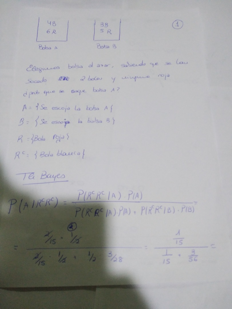 Se elige una bolsa al azar y se sacan 2 bolas de ella. Si de las dos bolas extraídas ninguna es roja, halla la probabilidad de que la bolsa escogida sea A.