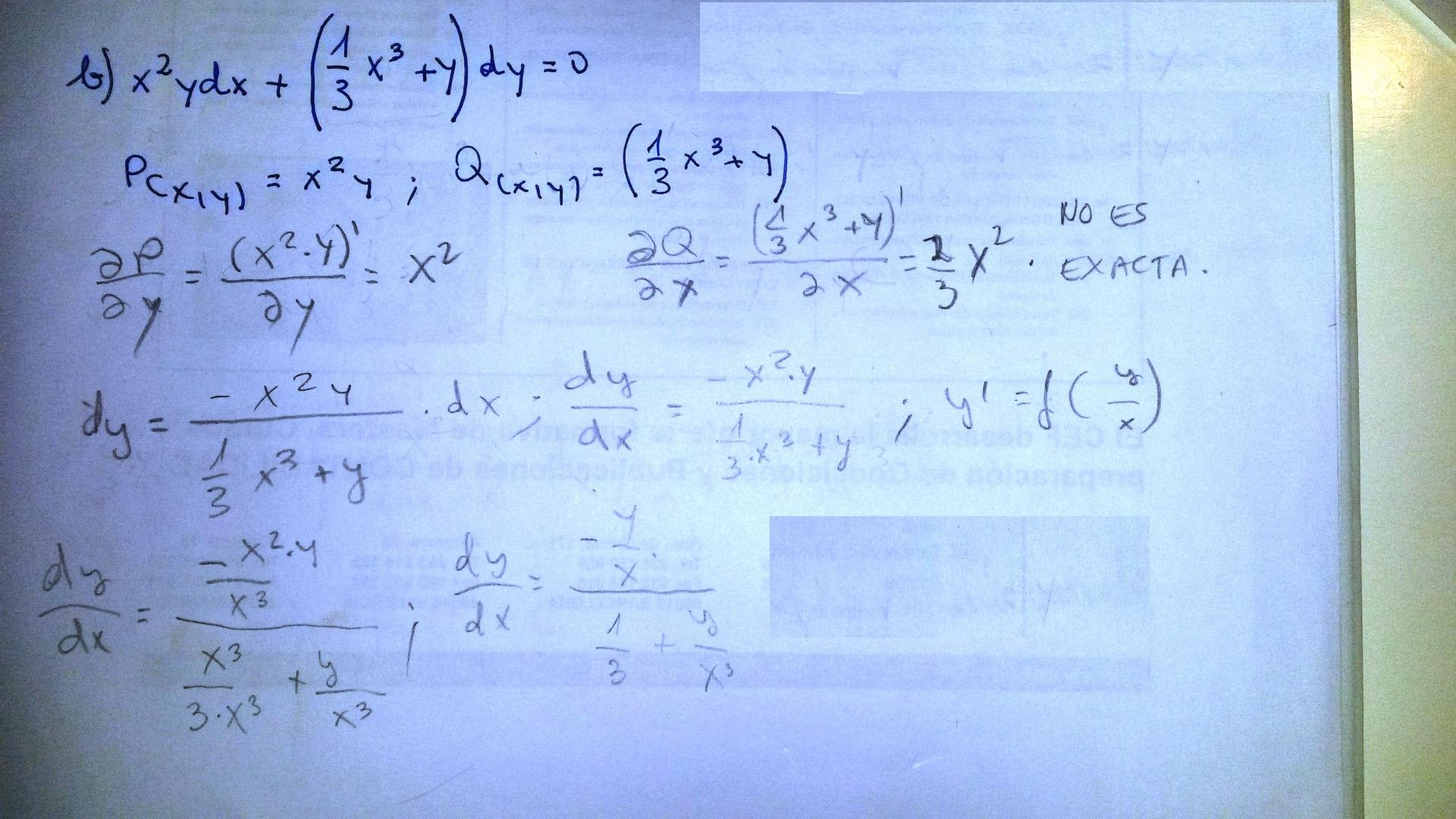 hola, subo una ejercicio del cual no he entendido la respuesta, pues me dicen que es ec. dif exacta, pero segun las derivadas parciales no lo es. alguien me ayuda por favor?