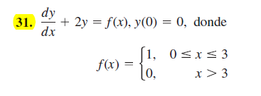 Por lo tanto, la solución particular para y(0) = 0 de la ecuación diferencial del enunciado será la función continua en x = 3 cuya expresión es: