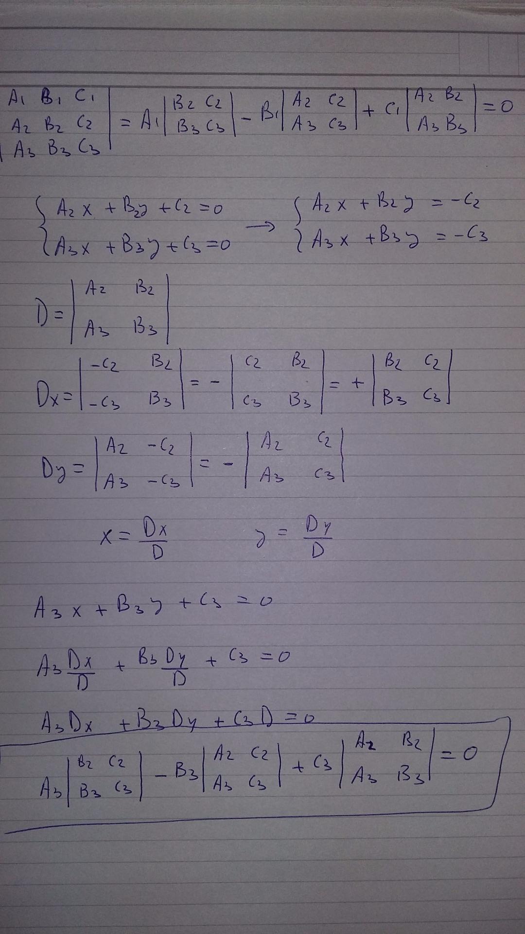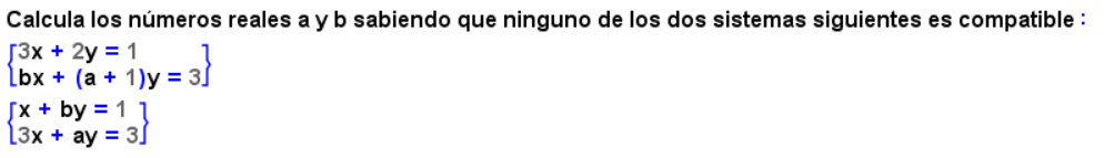 Luego, puedes resolver es sistema de dos ecuaciones lineales de primer grado con dos incógnitas formado por la segunda y la tercera ecuación, aplicando la regla de Cramer.