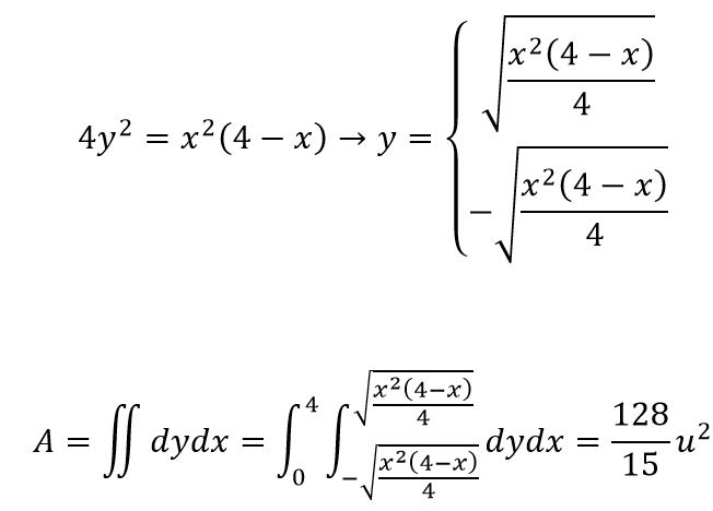 En esta ayuda que pido debo encontrar el área del lazo 4y²=x²(4-x)