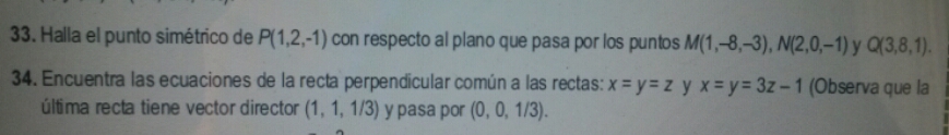 Hola unicoos, tengo una duda con el ejercicio 33 y esque me sale que no tiene solucion la ecuacion del plano q me pide porque los vectores son prporcionales, estoy en lo cierto? Gracias