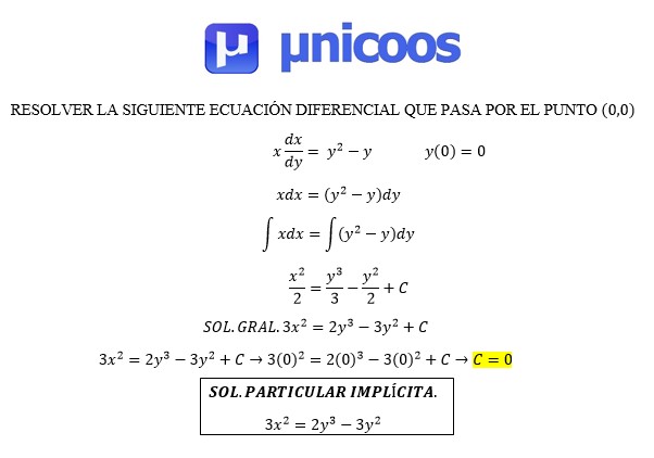 Hola que tal , me podrian ayudar a resolver esta ecuacion diferencial xdx/dy=y^2-y que pasa por los puntos (0,0)