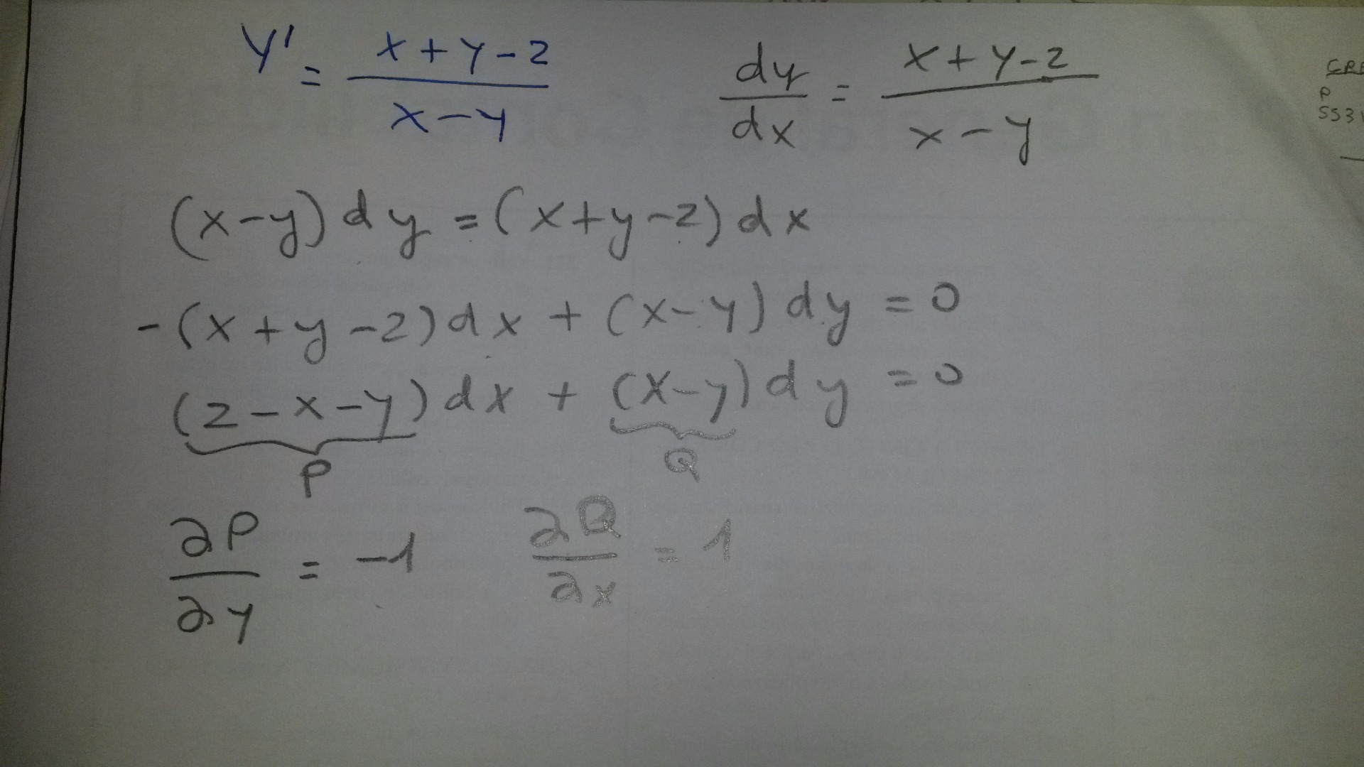en los primeros pasos para averiguar si es exacta esta ec.diferencial, me da -1 y 1.