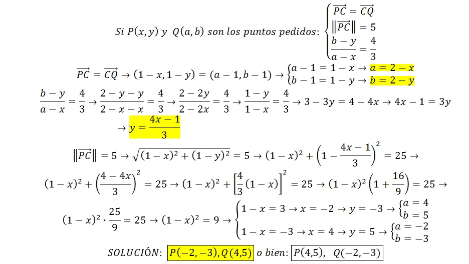 Halle las coordenadas de los puntos extremos del diámetro cuya pendiente es 4/3.
