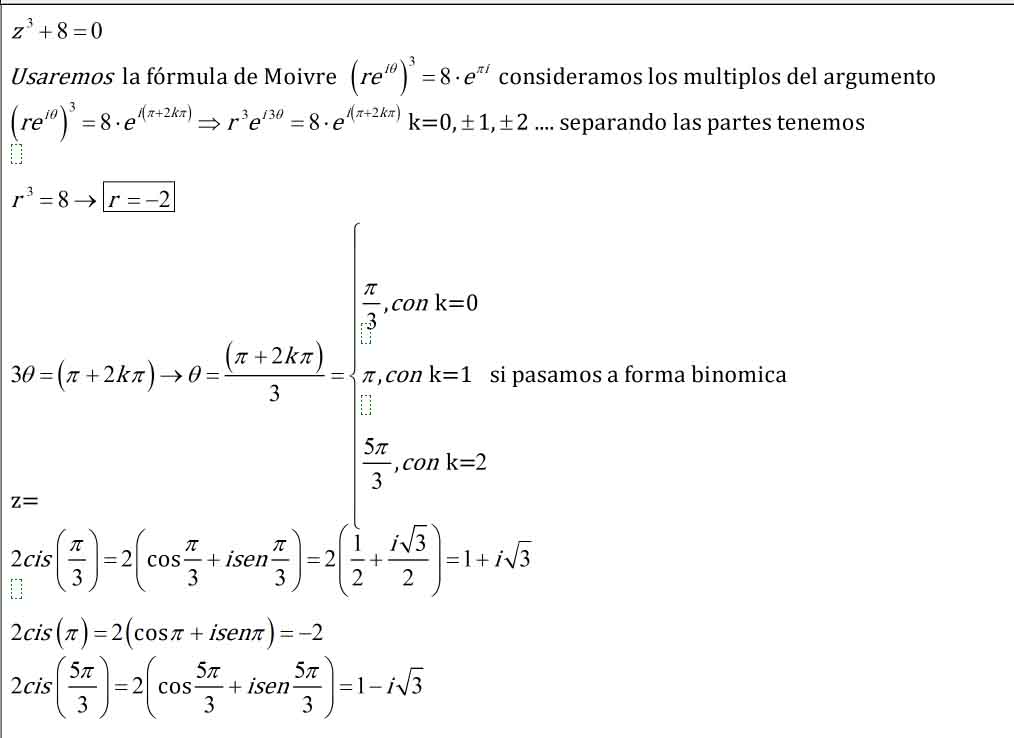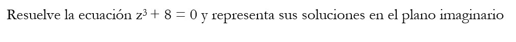 Si z³+8=0.... z³=-8.... z=³√(-8).... Y ahora como en este vídeo... Numeros complejos 04 - Raiz