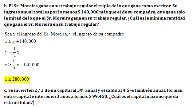x1 + x2 = 280.000; 3x2 + x2 = 280.000; 4x2=280.000; x2 = 70.000 dólares que gana como escritor.