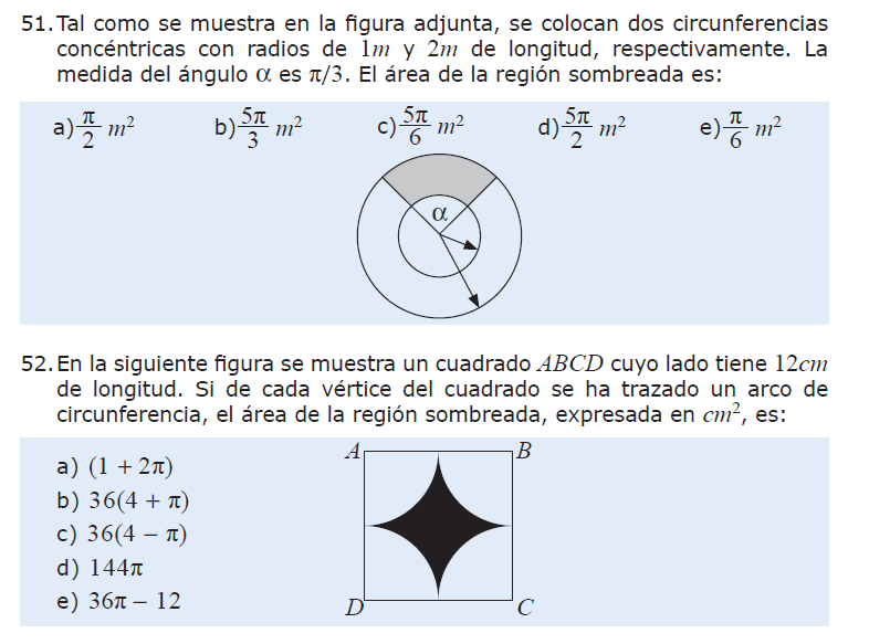 Area del trozo de corona exterior: 2π corresponde a 3π (corona exterior completa), π/3 corresponde a x→X=π/2 m²