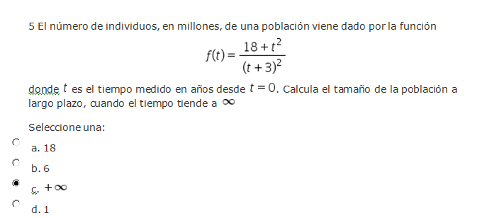 Lím(t-->+inf) (18 / t^2 + 1)/(1 + 6/t + 9 / t^2) = 18/1 = 18