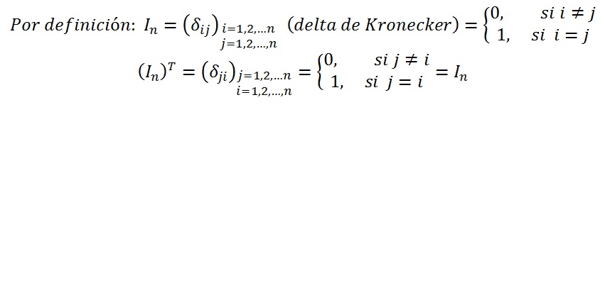 unicoos perdonen si estoy molestando mucho, pero me ayudarian con esta otra demostracion, es que no entiendo como puedo demostra algo que es tan simple. se trata de la transpocision de la matriz identidad. Ayudenme por favor. Y si pudieran indicarme un pdf donde se encuentren algunas demostraciones y expliquen con claridad las operaciones, seria genial.