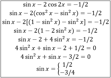 senx - 2(1 - (senx)^2) + 2(senx)^2 =- 1/2
