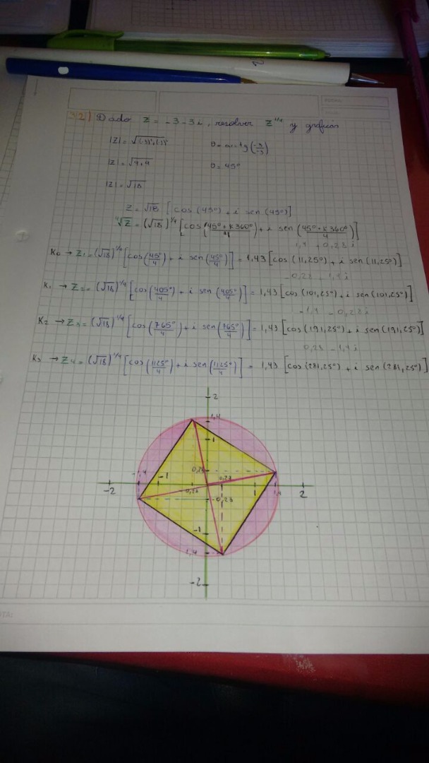 Para el tercer cuadrante: a la respuesta de la calculadora hay que sumarle 180° (este es tu caso, el argumento de z será 45° + 180° = 225°).
