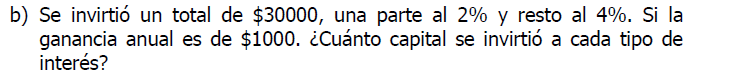 x: "suma invertida al 2% anual", luego la ganancia obtenida con esta inversión es: (2/100)*x = 0,02*x