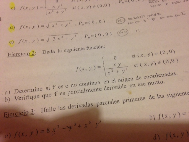 Por lo tanto, las dos derivadas parciales en el punto (0,0) existen y valen 0.