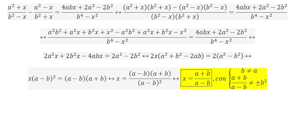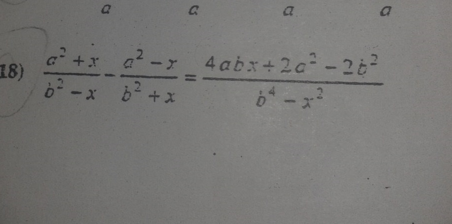 (a²+x)/(b²-x) - (a²-x)/(b²+x)=[(a²+x)(b²+x)-(a²-x)(b²-x)]/[(b²-x)(b²+x)]