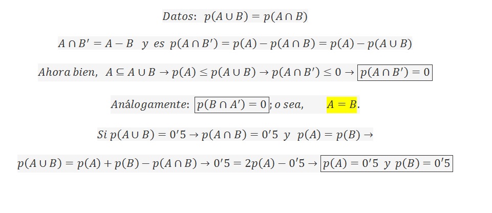 Sean A y B dos sucesos tales que p(AUB) = p(A interseccion B)