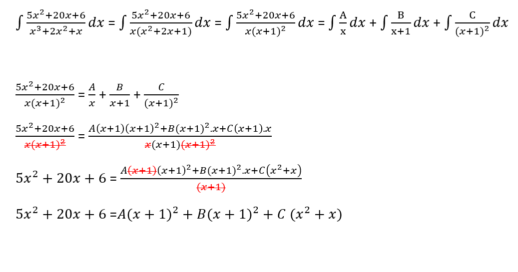 Tengo esta integral y llegué hasta este punto de resolución. El tema es que si reemplazo x por -1, anulo a A, B y C. Cómo lo termino?