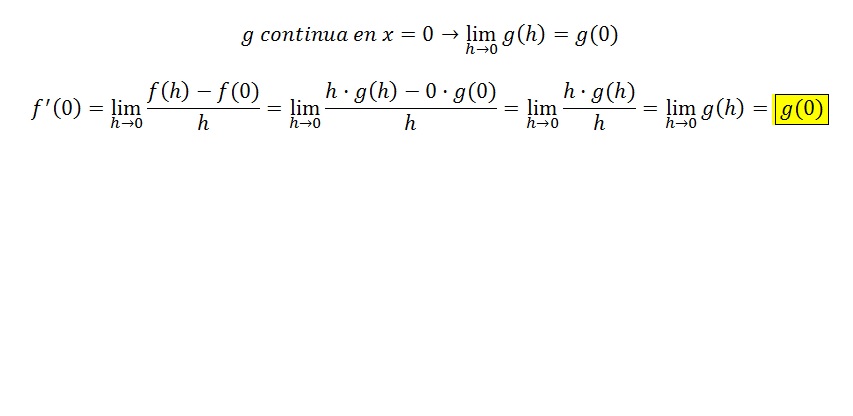 f ' (0) = Lím (h --> 0) (f(0 +h) - f(0)) / h = Lím (h --> 0) g(h) = g(0)