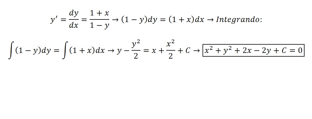 La solución es una circunferencia....... x²+y²+2x-2y=C