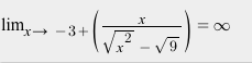 lim x→-3^- (x / √x^2 - √9) = x / x - 3 = -3 / -3 - 3= 1/2