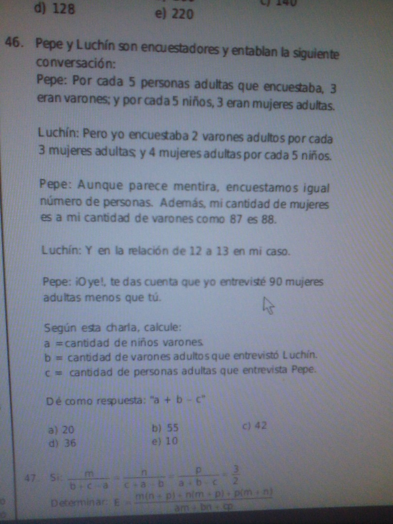 pepe y luchin son encuestadores y entablan la siguiente conversacion: