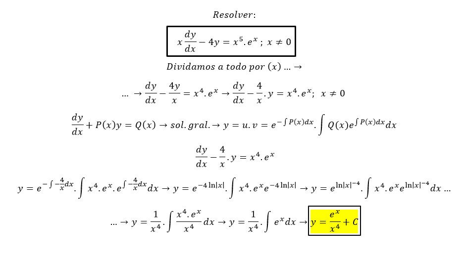 x * y ' - 4*y = 4 * x^4 * e^x + x^5 * e^x + 4C * x^4 - (4 * x^4 * e^x + 4C * x^4) = distribuimos el signo en el agrupamiento de términos y tenemos: