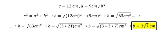 Hola, necesito ayuda con un ejercicio de triángulos rectángulos, me dan la hipotenusa (12 cm) y el cateto adyacente (9 cm) y me piden calcular el cateto opuesto, para ello utilizo la formula c.o= √hip^2 - c.a^2. al final me queda c.o= √63 cm^2, mi pregunta es: cómo puedo simplificar ese valor de modo que me quede en cm y sin decimales?