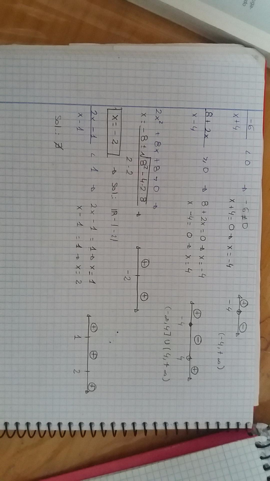 el ultimo ejercicio esta mal, debido a que se te olvido pasar todo a un mismo miembro de la desigualdad .