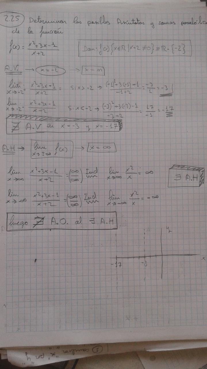 Hola este es un ejercicio de asintotas y ramas parabolicas, calculé las asintotas (espero que bien) y donde me atasco es en el estudio de las ramas .Alguien me dice como seguir?? Y si hay algun video de esto. Gracias a todos