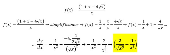 holaa!! como se resuelve esta derivada? f (x) = (1+x-4 √x ) todo esto sobre x . es decir es un cociente