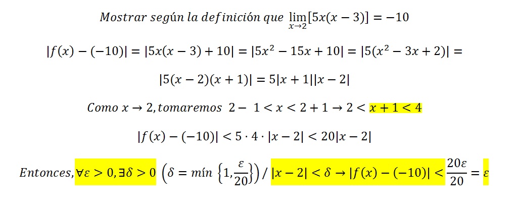 por ejemplo en el limite cuando x tiende a 2 de 5x(x-3)=-10