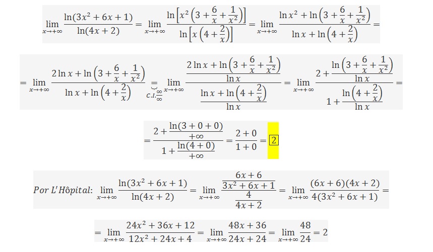 limite x-> ∞ Ln (3x^2+6x+1)/ Ln (4x+2)