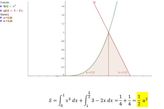 Dice así: CALCULAR EL ÁREA DE LA REGIÓN COMPRENDIDA ENTRE EL EJE "OY" Y LAS GRÁFICAS DE f(x)= X ^3 y g(x)= 3-2X.