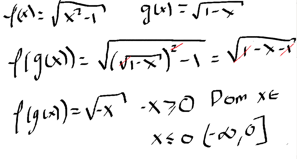 Es que estoy mareado con el ejercicio.Mira, tengo f(x)=raiz cuarada de x^2 -1 y tengo g(x)=raiz de 1-x