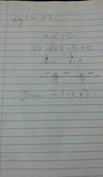 Buenas noches.Alguien podria mostrarme como calcular el dominio de esta funcion? F(x)=log(4-x^2)