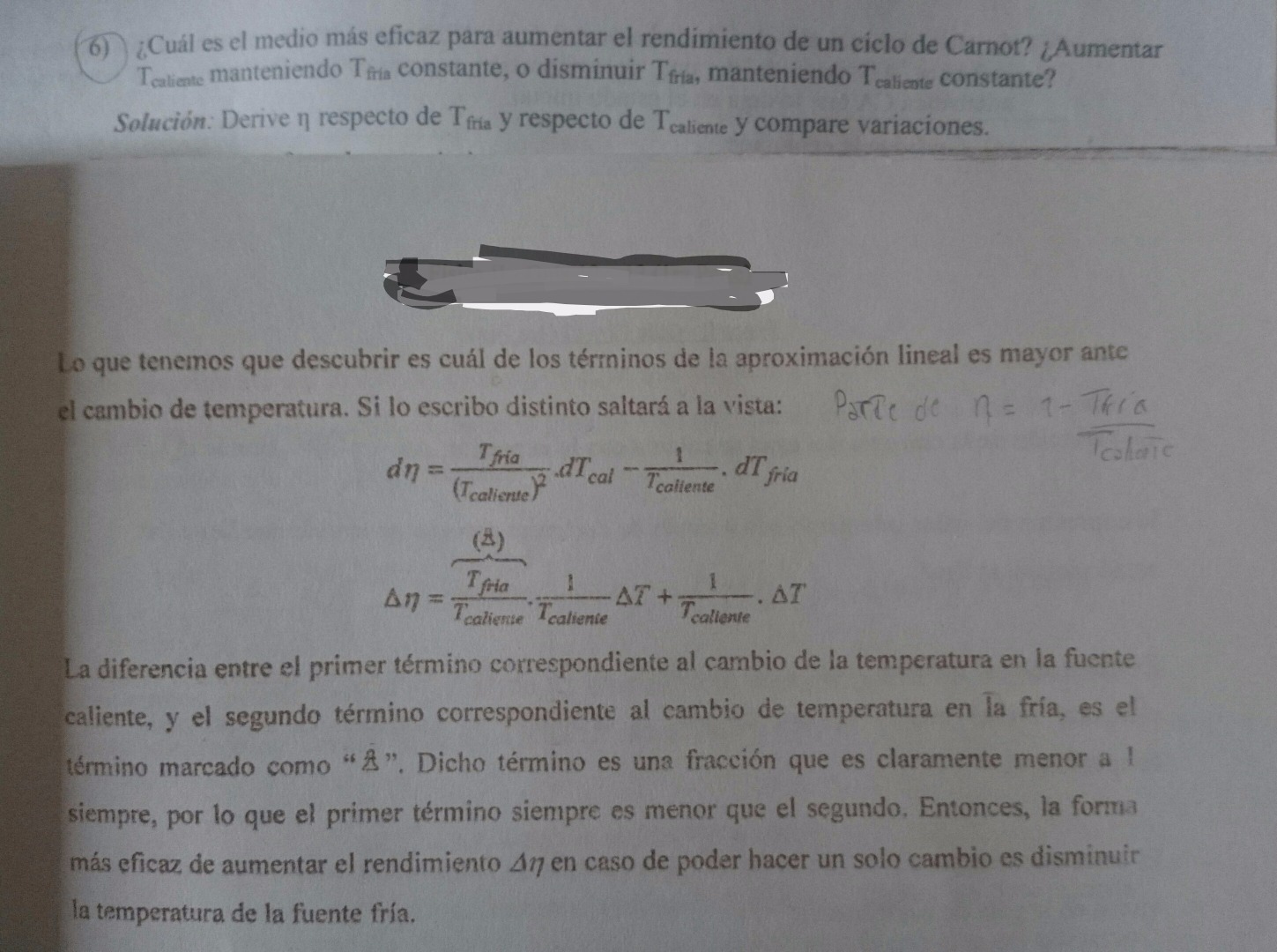 Tengo que si aunmentar Tcaliente o disminuir Tfria. Nose por llega a esa conclusión mediante derivas parciales.