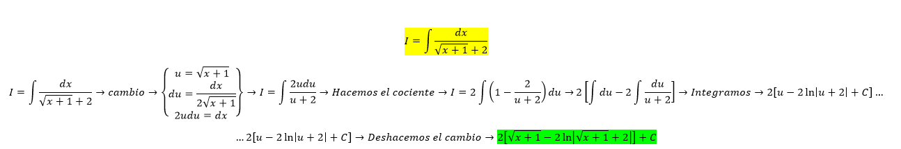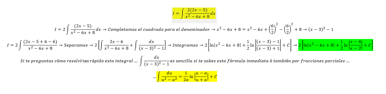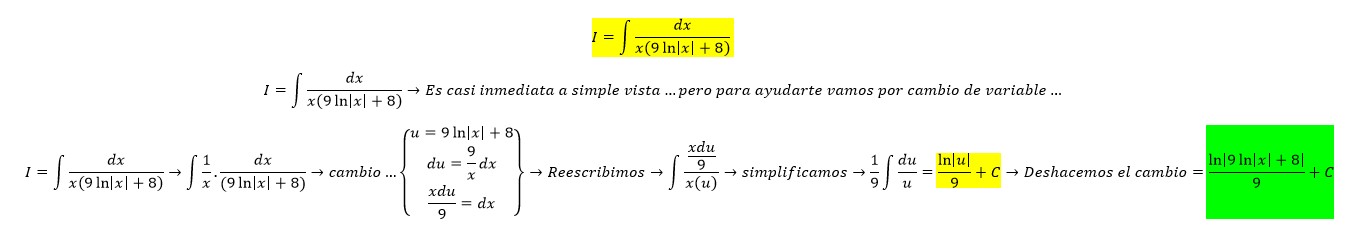 Lizbeth, lo siento, pero está ya es la quinta o sexta integral que nos envías.. Se trata de que aportéis algo más que enunciados, que veáis las decenas de videos de integrales antes para que adquiráis base... Y se trata, despues DE IR A CLASE que enviéis dudas concretas, muy concretas. Y que nos enviéis también todo aquello que hayais conseguido hacer por vosotros mismos. Paso a paso, esté bien o mal. No solo el enunciado. De esa manera podremos saber vuestro nivel, en que podemos ayudaros, cuales son vuestros fallos.... Y el trabajo duro será el vuestro. #nosvemosenclase Nos cuentas ¿ok?