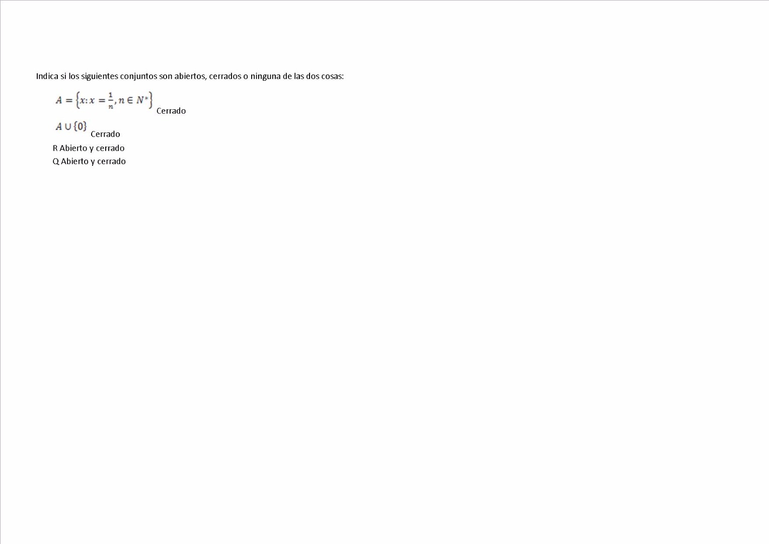 Tengo dudas con respecto a los conjuntos abiertos y cerrados en topología. Adjunto algunos ejercicios que resolví para saber si son correctos.