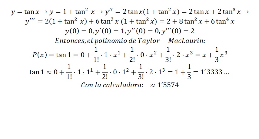 Calcule tan(1) en la calculadora y compare con el polinomio de Taylor evaluado en 1. (2 puntos c/u)