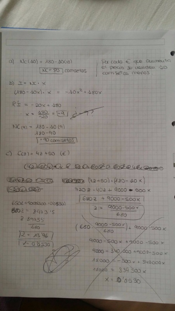 Y el beneficion=I(x)-C(x)=-10x²+180 -(770-40x)= -10x²+40x-590...